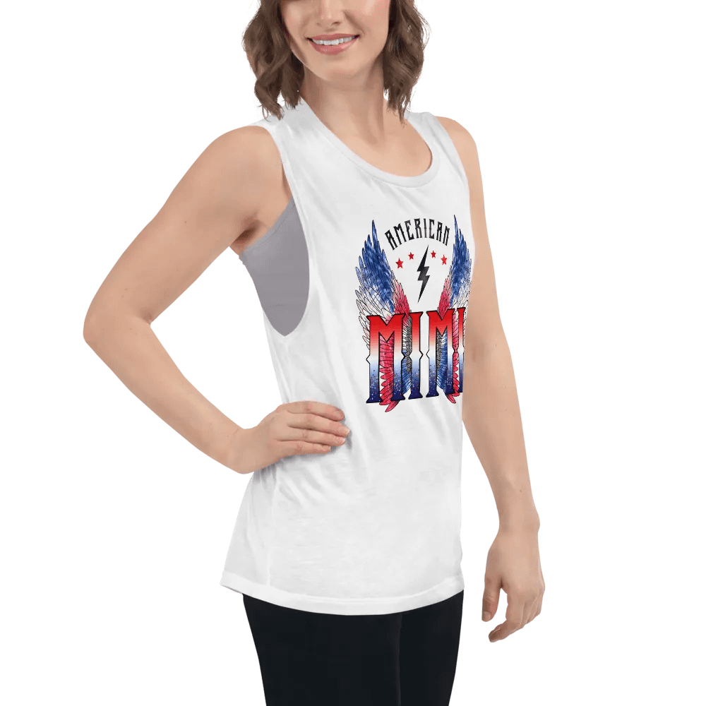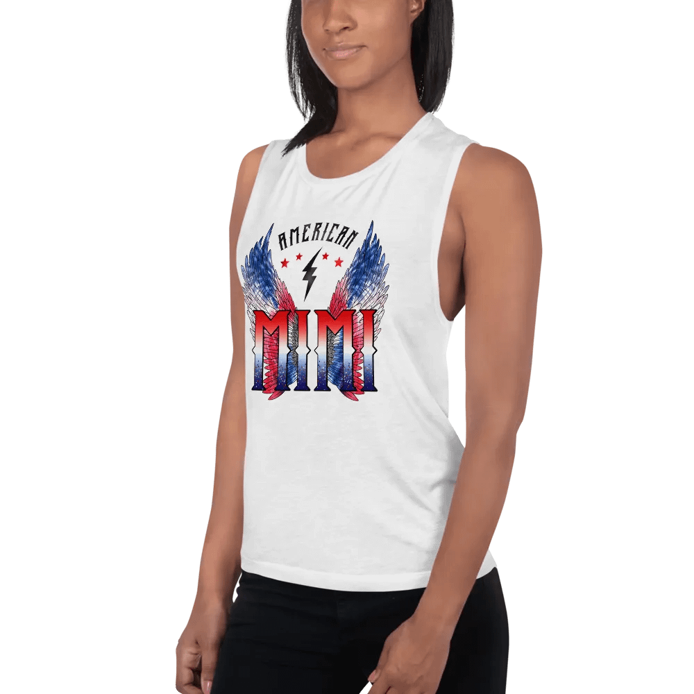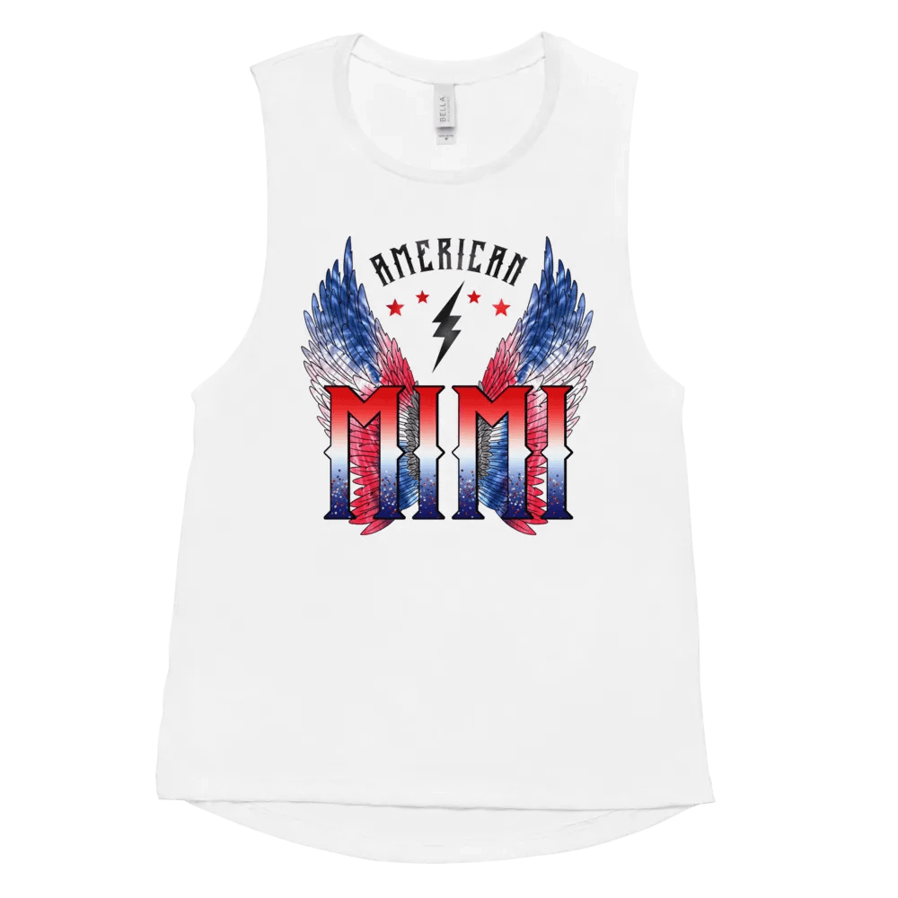 Are you looking to add a touch of unique style to your wardrobe? Look no further! Our "American Mimi" Flowy muscle top its the perfect blend of comfort, fashion, and a little bit of magic. Here’s why this is a must-have addition to your collection.Proudly display your love for the USA with the bold "American Mimi" print. This Tank is perfect for showcasing your patriotism in a stylish and subtle way, whether you're celebrating a national holiday or just feeling the love for your country.