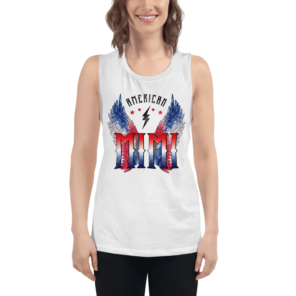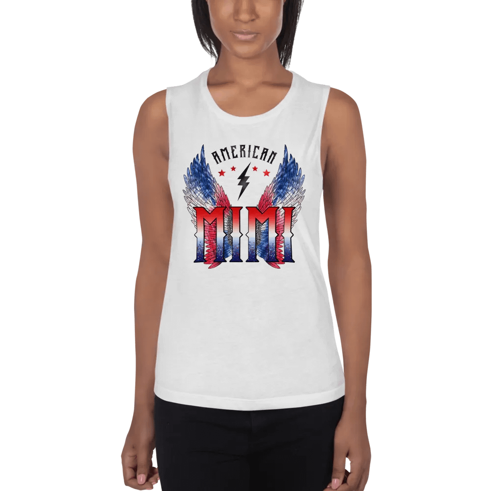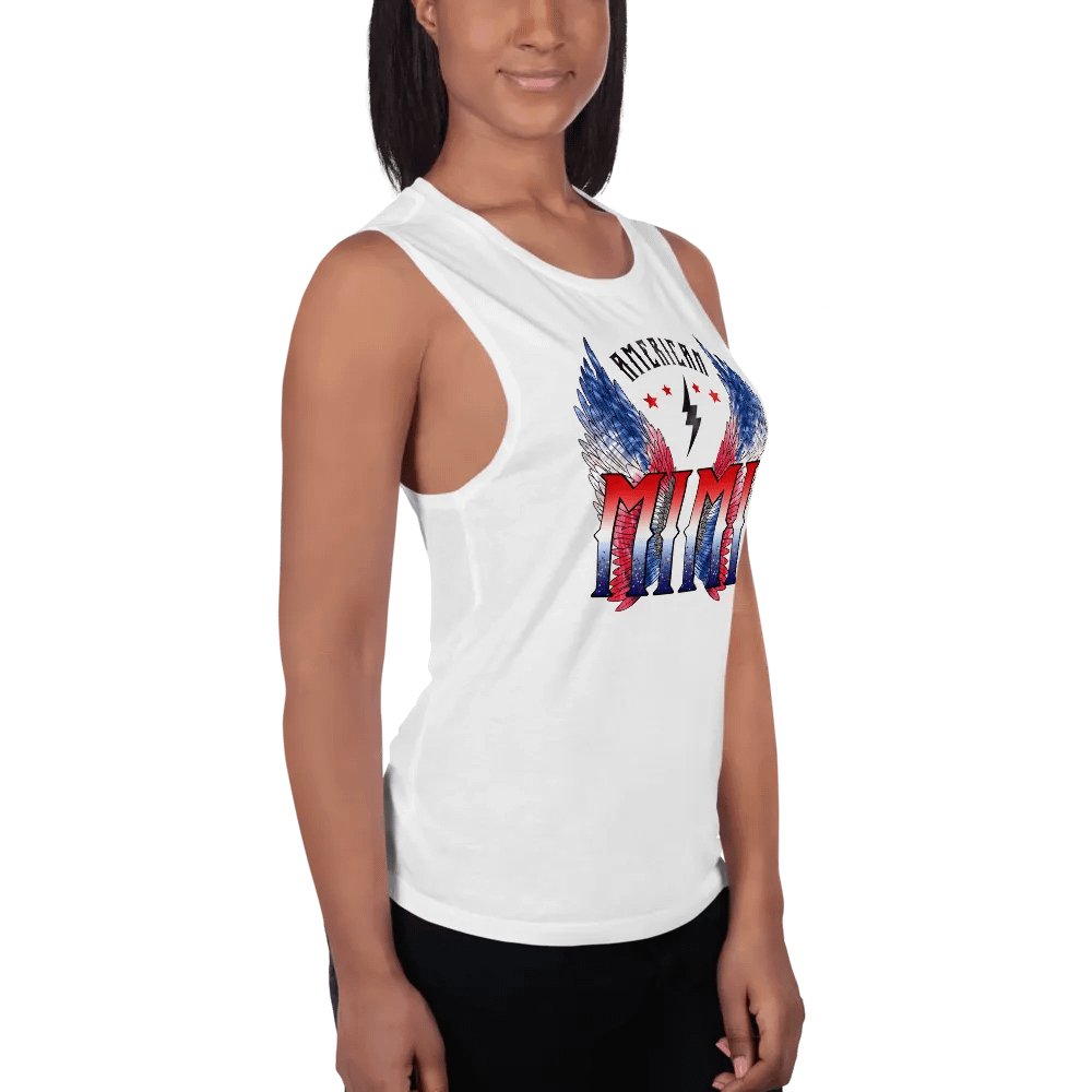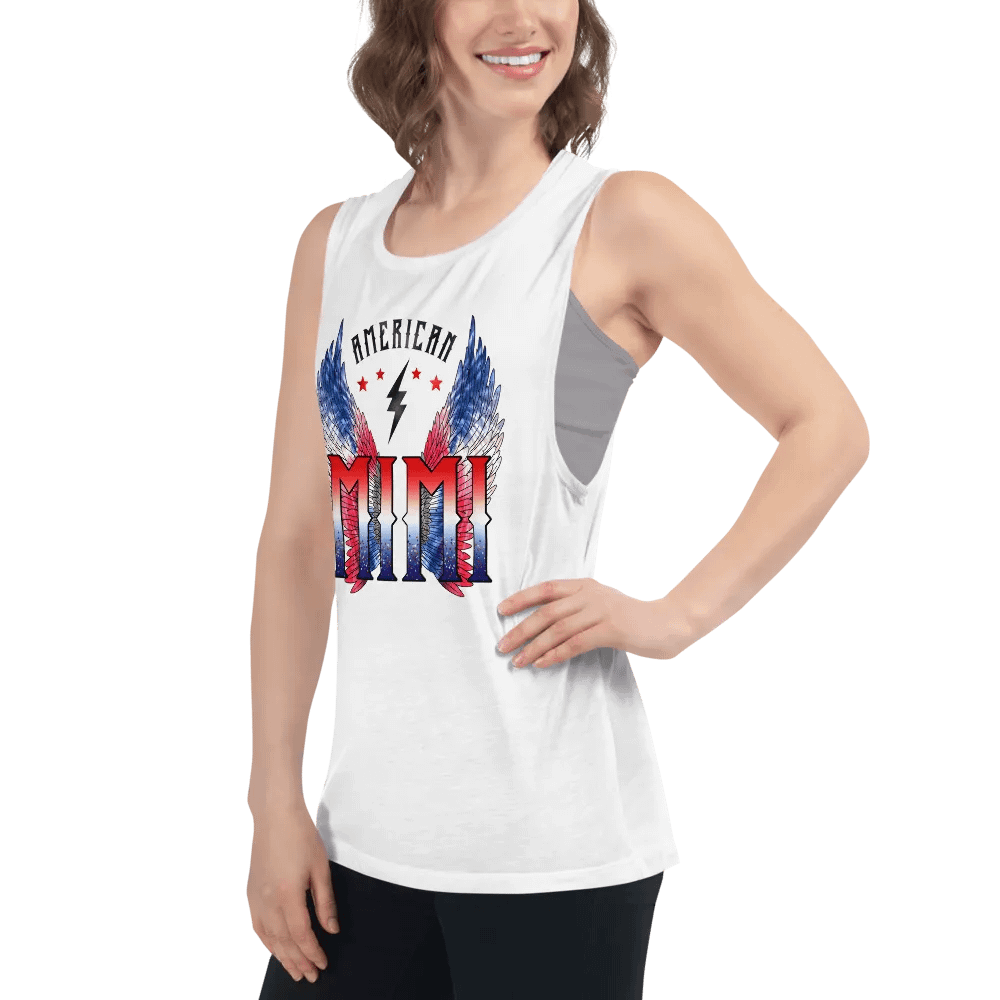 Are you looking to add a touch of unique style to your wardrobe? Look no further! Our "American Mimi" Flowy muscle top its the perfect blend of comfort, fashion, and a little bit of magic. Here’s why this is a must-have addition to your collection.Proudly display your love for the USA with the bold "American Mimi" print. This Tank is perfect for showcasing your patriotism in a stylish and subtle way, whether you're celebrating a national holiday or just feeling the love for your country.